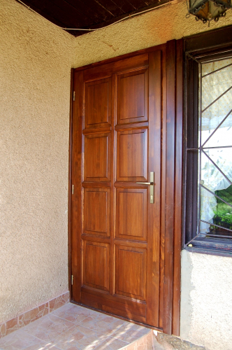 Családi ház bejárati ajtó üveges felső résszel Családi ház egyedi bejárati ajtó  6 kazettás tömörfa bejárati ajtó  Egyedi fa bejárati ajtó előtetővel Budapest 17. kerület  Napsugármintás bejárati ajtó Budapest XVII. kerület  Üveges fa bejárati ajtó Budapest 17. kerület  Egyedi fa bejárati ajtó Budapest Akadémiaújtelep