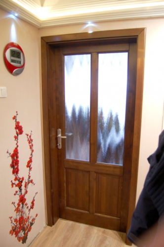 Egyedi beltéri ajtó Budapest Beltéri ajtócsere Budapest Üveges festett beltéri ajtó Beltéri fa ajtó csere Budapest 6. kerület Szobai beltéri ajtó screen üveggel Natúr borovifenyő ajtó csere Bajuszmintás üveges beltéri ajtó csere